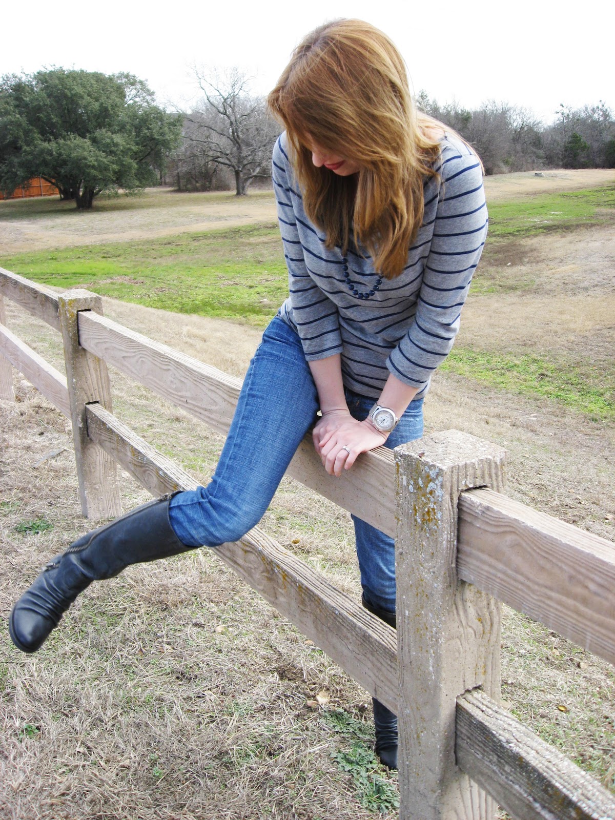 #3: I see this outfit as the most daring of them all, simply because of the boldness of the colors. I do love the contrast between the skirt and sweater though. The navy coordinates with the navy in the skirt, but it definitely is not matchy-matchy. I think the cowboy boots give it an unexpected twist and the bangles add an accessory to the outfit without being overbearing. Pairing tights with this outfit would also work well! I would wear this to a concert, art gallery (not that I ever go to those), lunch and/or dinner, or who knows, maybe while sitting around watching TV.